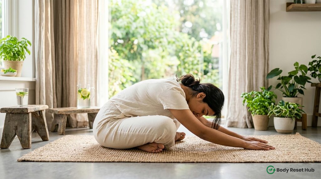 A healthy daily habit is as simple as a 10-minute walk after every meal or a quick 5-minute stretch while your coffee brews. This “Movement Snacks” approach keeps your lymphatic system moving and prevents the metabolic “shutdown” that happens when we sit for hours at a desk.