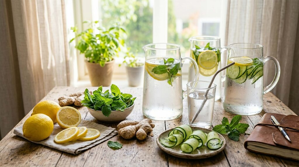 The foundation of any effective detox plan is hydration, but not just plain water. We call it “Functional Hydration.” By adding natural ingredients to your water, you turn a simple drink into a metabolic powerhouse.